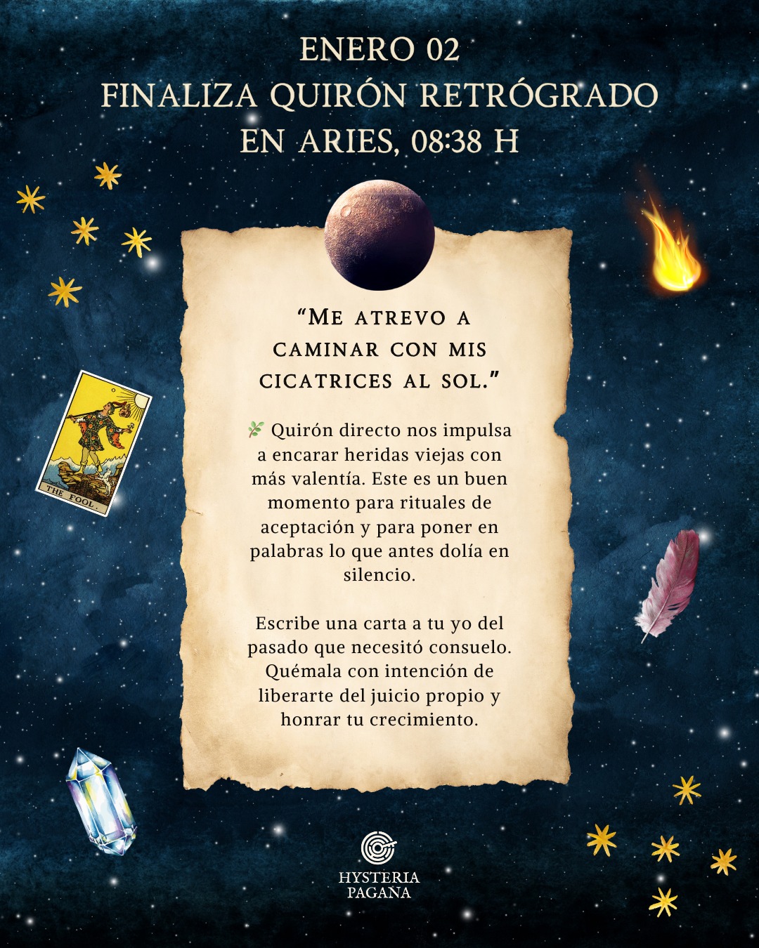 🪐Enero 02: Finaliza Quirón Retrógrado en Aries a las 08:38 h, el cual ha estado en retrógrado desde el 30 de julio, 2025 en el mismo signo.