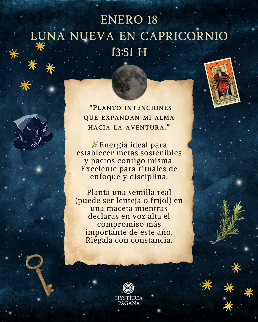 🌑Enero 18: Luna Nueva en Capricornio. La luna es a las 13:51 h.