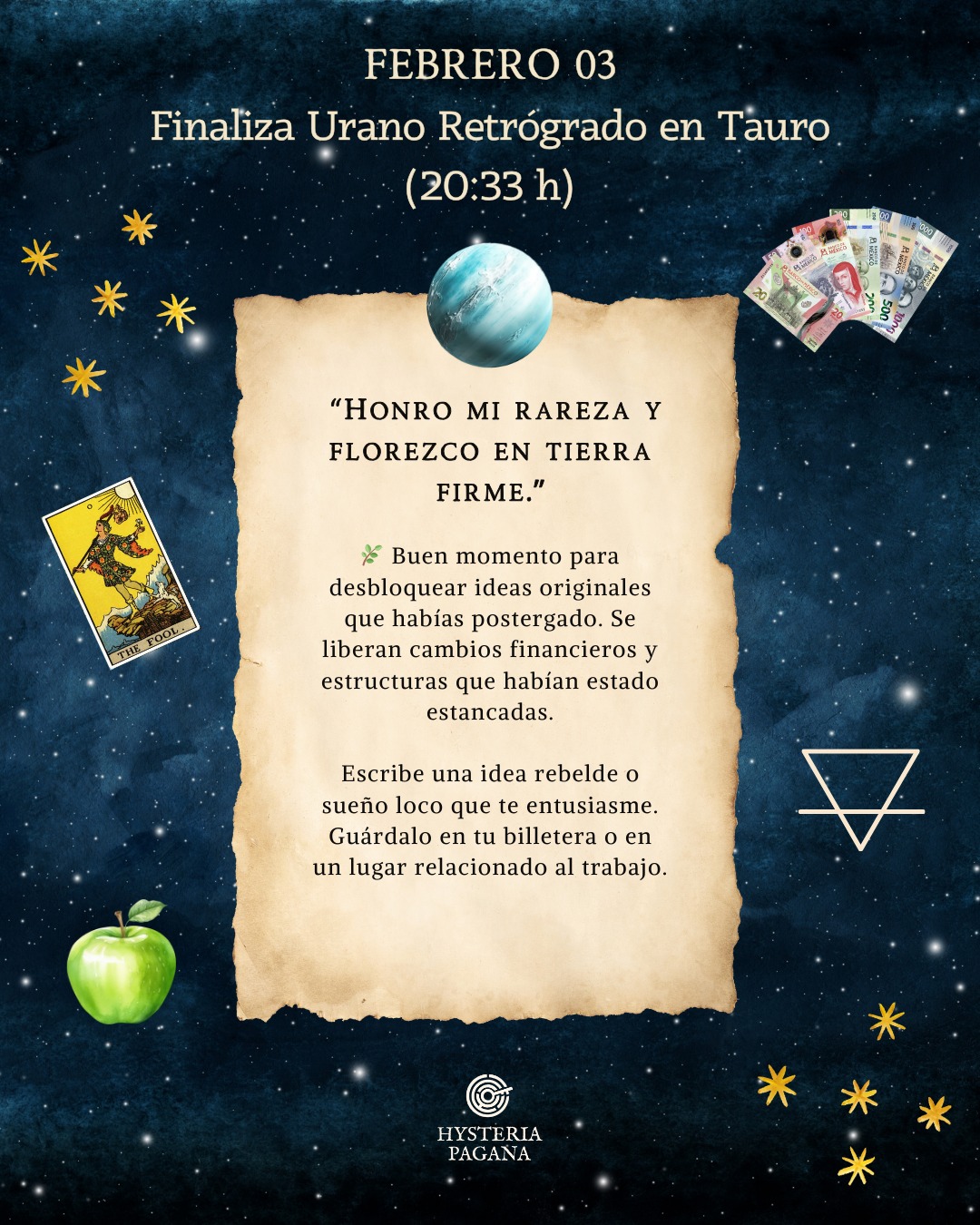 🪐Febrero 03: Finaliza Urano Retrógrado en Tauro a las 20:33 h, el cual ha estado en retrógrado desde el 05 de septiembre, 2025 en Géminis.