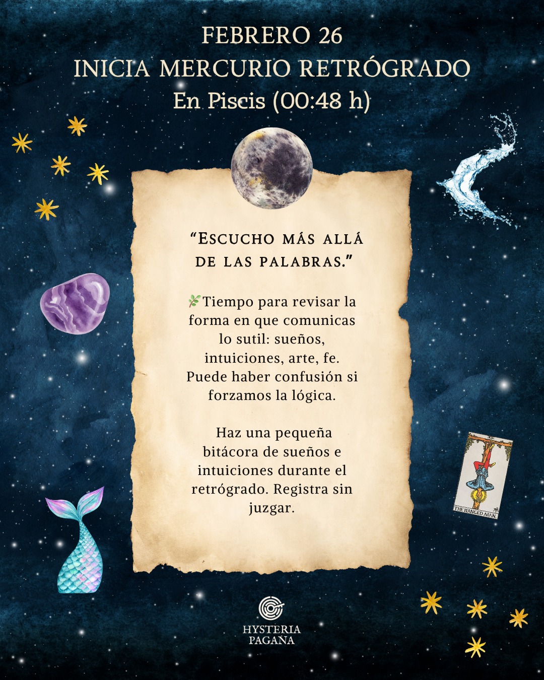 🪐Febrero 26: Inicia Mercurio Retrógrado entrando a las 00:48 hrs en Piscis, finalizando hasta el 20 de marzo, a las 13:33 h en el mismo signo.